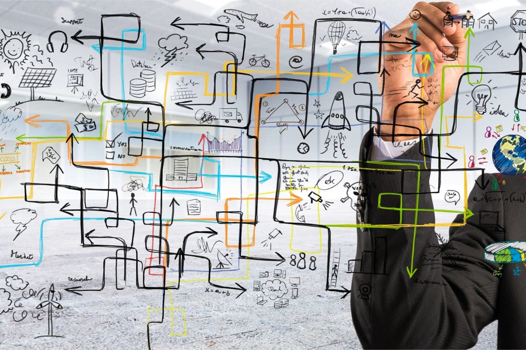 Das Wirrwarr im Hintergrund dieses Bildes können wir mit Hilfe eines vorgefertigten Systemmodells einfacher und besser strukturiert abbilden. Damit können wir zwar die komplexe Realität nur vereinfacht abbilden, aber eine Organisation wird mit ihren Einzelteilen besser über-schaubar und besser steuerbar.